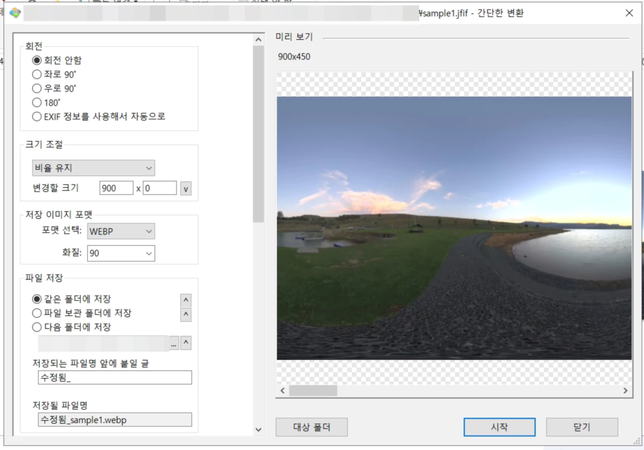 JFIF 파일 선택 -> 마우스 우클릭 후 꿀뷰로 변환 -> 저장 이미지 포맷 JPG 선택 -> 기타 설정 확인 -> 시작